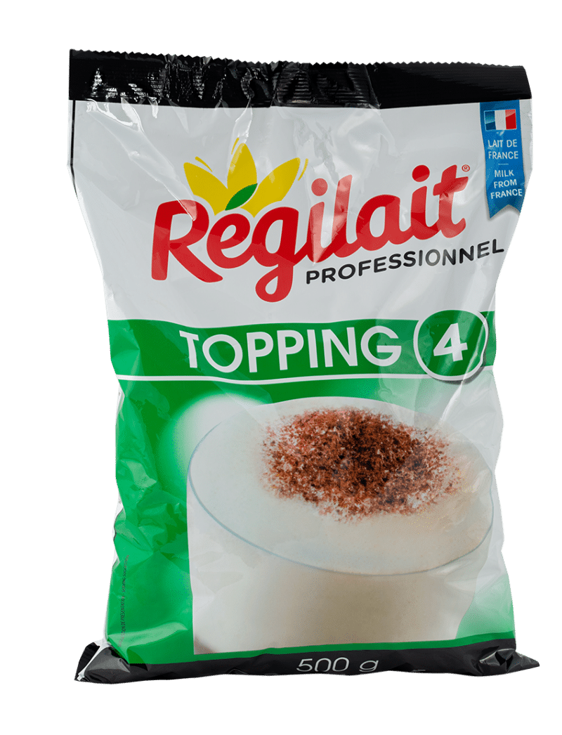 Regilait гранулиран топинг 4 Превъзходен продукт, специално създаден за напълно автоматични кафе машини. С 99,5% млечни съставки, включително 40% обезмаслено мляко, това е отлична алтернатива на гранулираното обезмаслено мляко. Régilait Granulated Topping 4V (Green) е любимият топинг на бизнес мениджърите. Дозировка: приблизително 5-12g в зависимост от варианта на напитката при 180ml